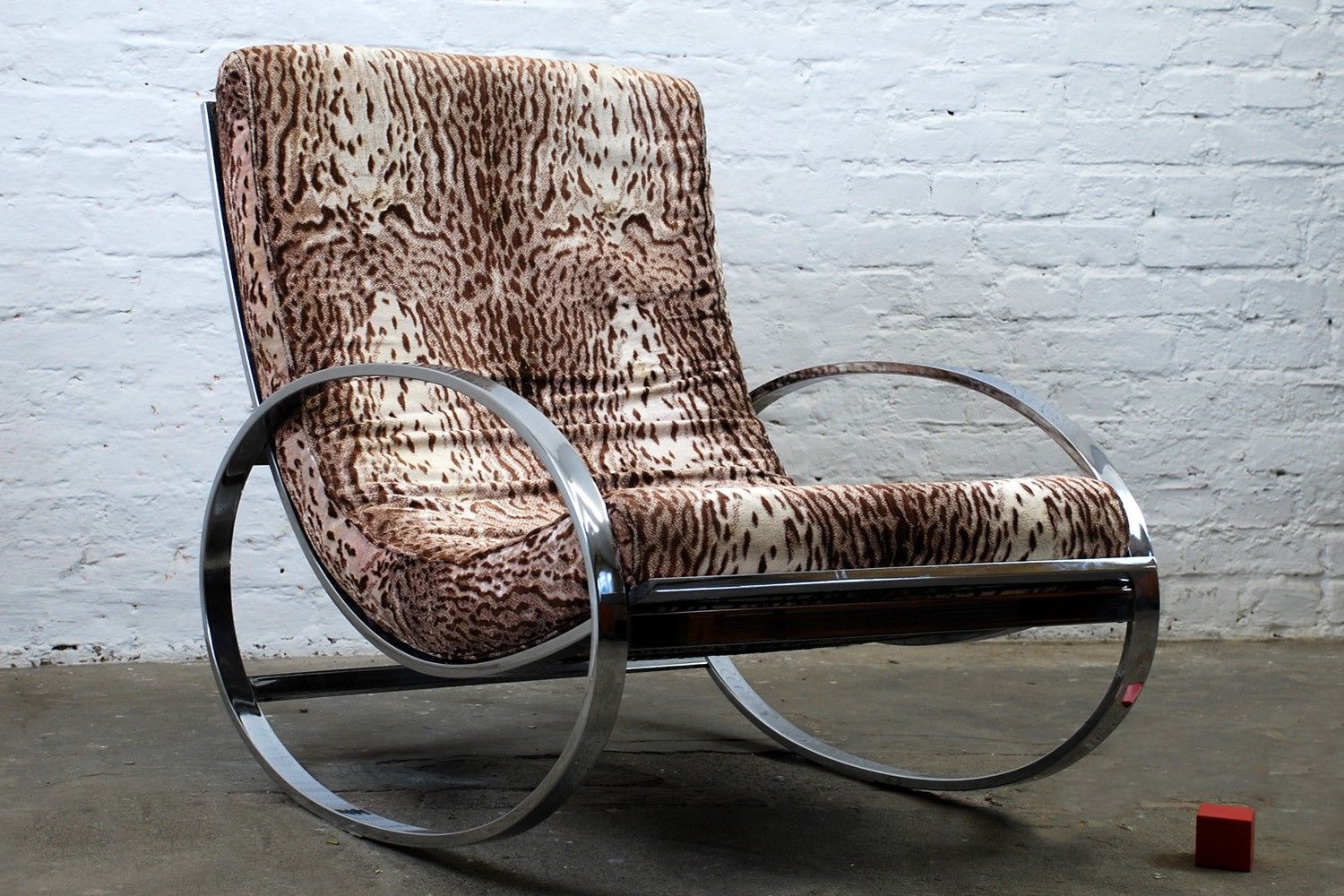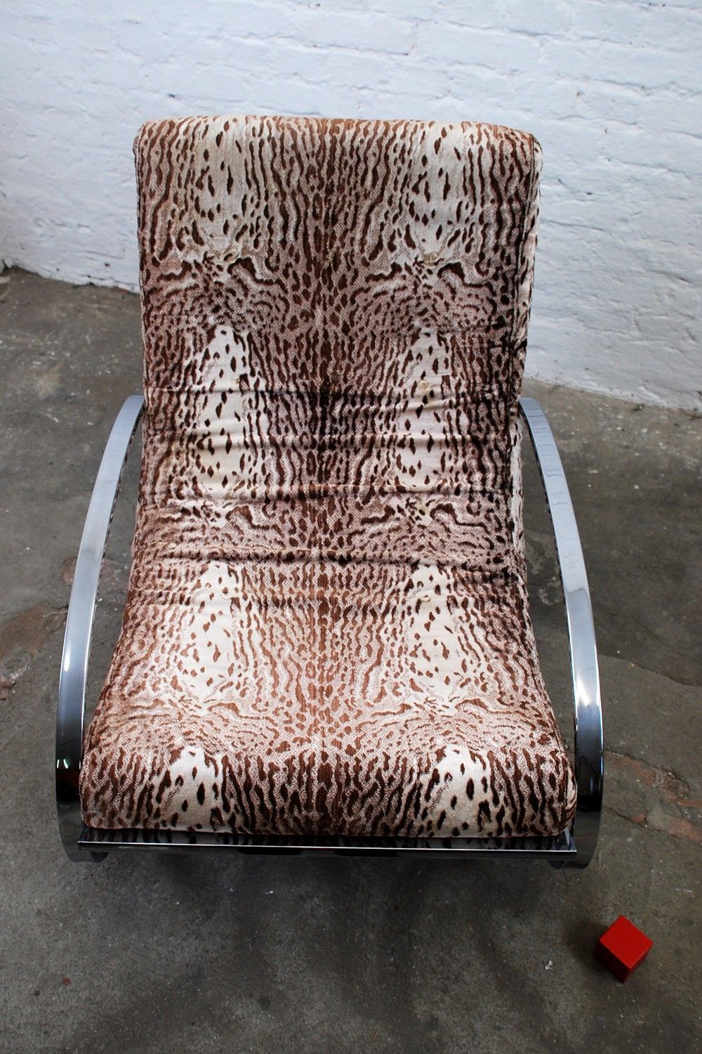 Its standing on oval chromed blades and its still covered with the original fabric.